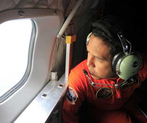 | Đái úy không quân Tri Wobowo là một trong những người đầu tiên phát hiện ra các mảnh vỡ trên biển |