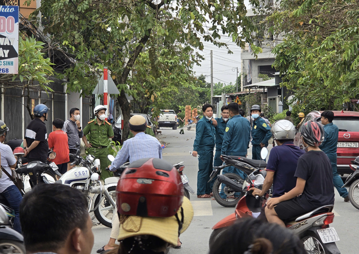 Cơ quan chức năng phong tỏa một đoạn đường Nguyễn Thị Đẹt để điều tra hiện trường vào sáng 1/11. (Ảnh: L.A)