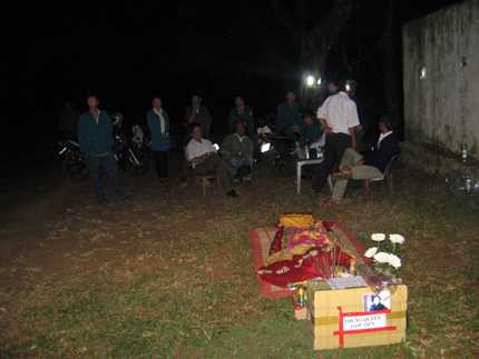 Cán bộ UBND xã Biển Hồ đang thay phiên túc trực bên thi thể nạn nhân