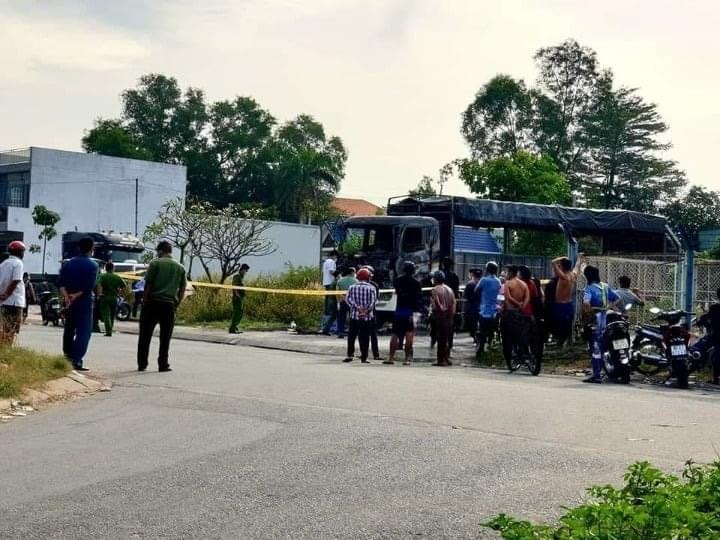 Sáng 3/1, cơ quan chức năng tỉnh Bình Dương khám nghiệm hiện trường, điều tra vụ việc nam tài xế chết cháy trong cabin xe tải.