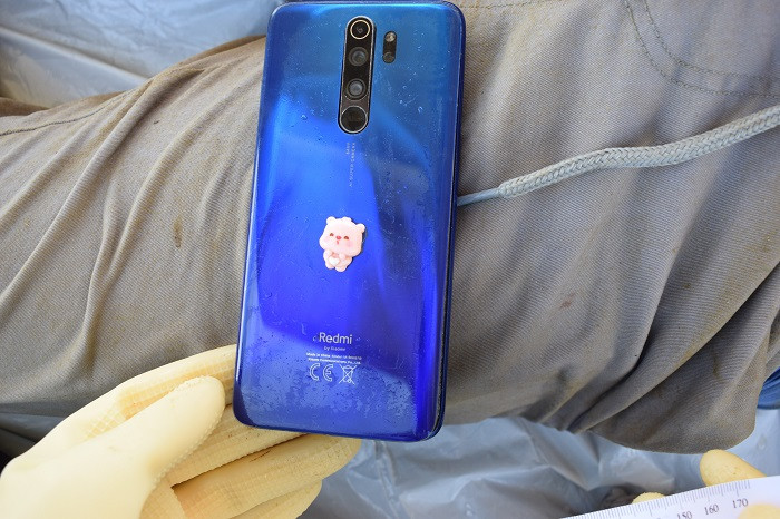 Chiếc điện thoại được tìm thấy trong túi quần của nạn nhân. (Ảnh: C.A)