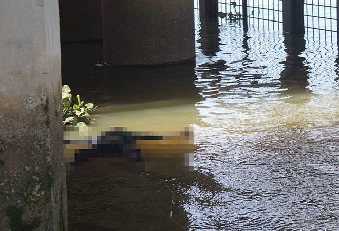 Thi thể nổi trên mặt nước. Ảnh: N.An.