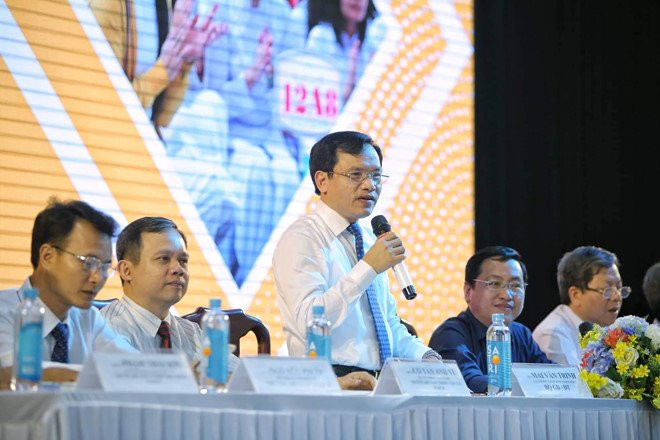 Chia sẻ thêm về nội dung ôn tập, ông Trinh nhắc lại, nội dung nằm trong chương trình phổ thông, chủ yếu lớp 12. Đề thi đảm bảo số lượng câu hỏi đủ lớn phục vụ xét tốt nghiệp, sau đó là một số câu hỏi có tính chất phân hóa dần phục vụ cho tuyển sinh.