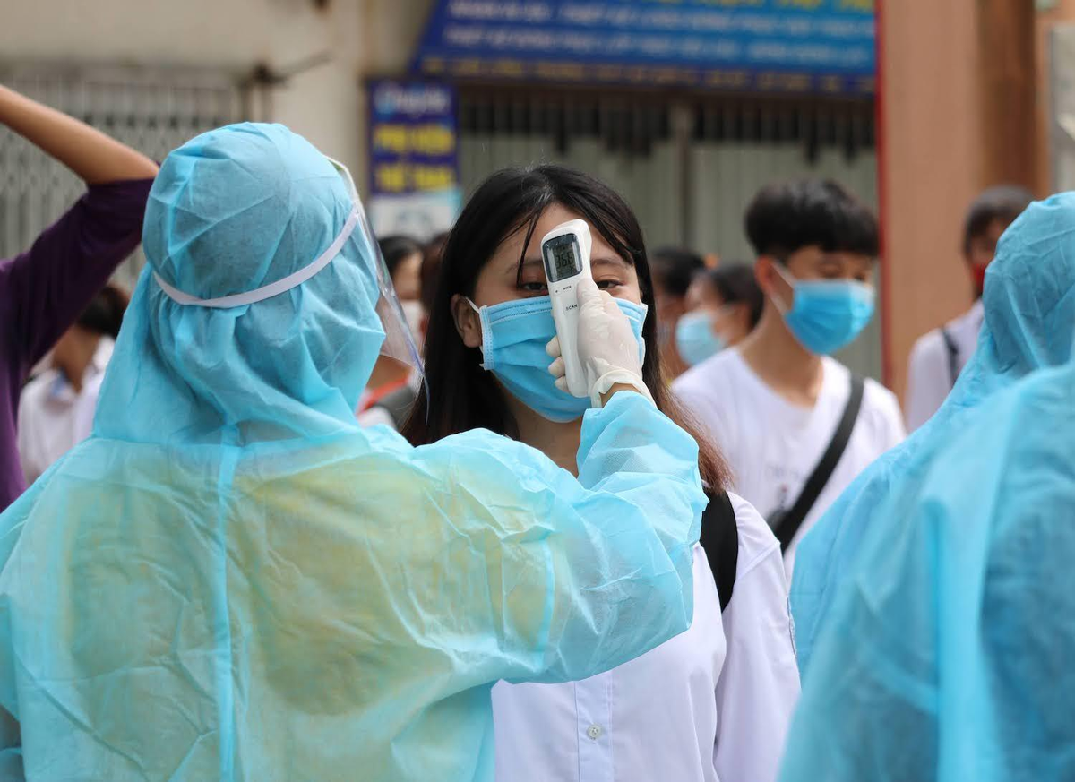 Mỗi điểm thi đều được bố trí nước sát khuẩn, khẩu trang y tế, tổ chức đo thân nhiệt cho thí sinh và người làm nhiệm vụ thi trước khi vào khu vực thi.