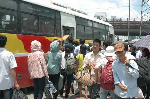 Hàng ngàn người cùng lúc đổ ra bến xe và các tuyến đường về các tỉnh.