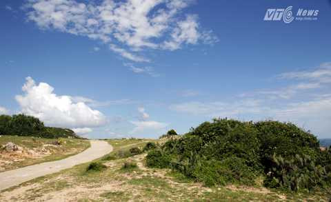 | Chỉ có một con đường nhỏ đổ bê tông dẫn sang ngọn hải đăng ở cuối Ghềnh Đèn. Cũng vì có ngọn hải đăng nên nơi đây mới được gọi là Ghềnh Đèn. |