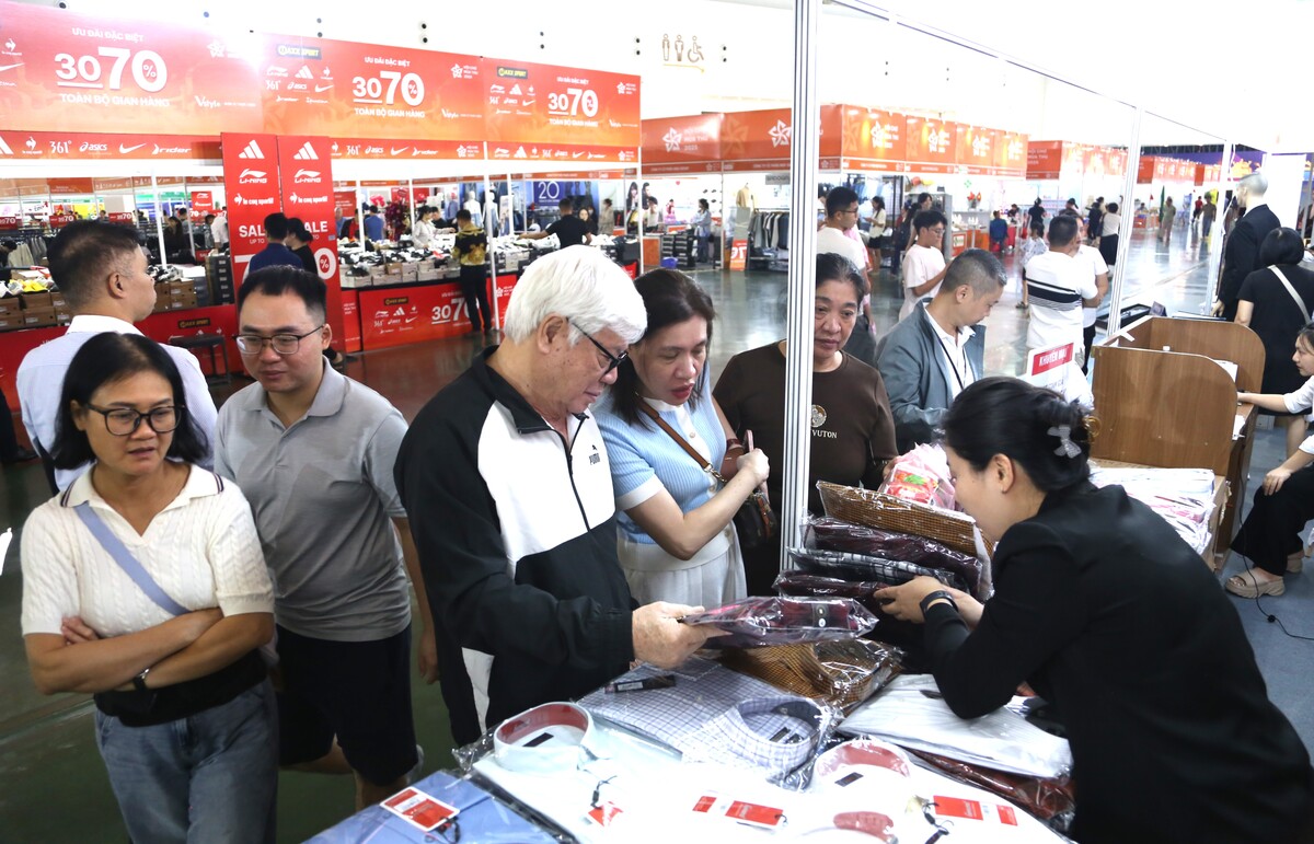 Trong đó, các nhãn hiệu thời trang đang tung mức khuyến mại từ 30% đến 70%. Vì thế các gian hàng bán quần áo, giày dép luôn nườm nượp khách từ sáng đến tối.