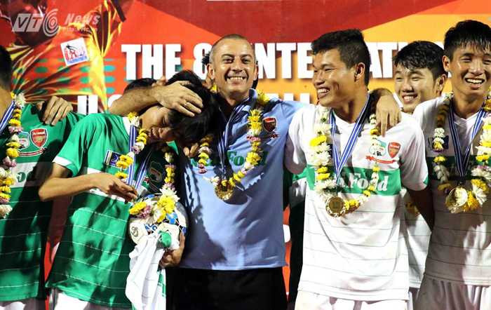 | Thầy Giôm và khoảnh khắc vô địch U21 Quốc tế Báo Thanh Niên 2014 cùng U19 HAGL (Ảnh: Quang Minh) |