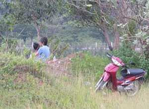Từng cặp đôi dựng xe ngồi tâm sự ngay sát hồ đá