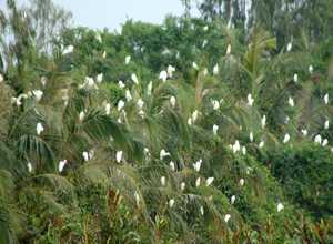 | Cò đậu trắng vườn dừa. Ảnh: Nguyệt Diễm. |