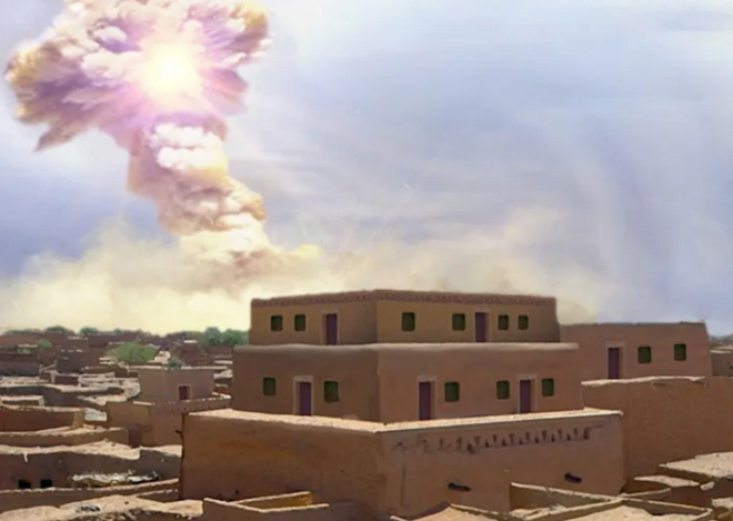 Vài giây sau, một đợt sóng xung kích lớn ập vào Tall el-Hammam. Di chuyển với tốc độ 1.200 km/h, nó mạnh hơn cả đợt lốc xoáy tồi tệ nhất được ghi nhận. Những cơn gió chết chóc xé toạc thành phố, phá hủy mọi tòa nhà.