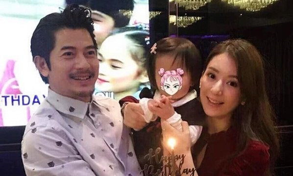 Vợ chồng Quách Phú Thành và con gái đầu lòng. Cô bé được truyền thông Hong Kong khen ngợi là đáng yêu và sở hữu đôi mắt to tròn giống mẹ.