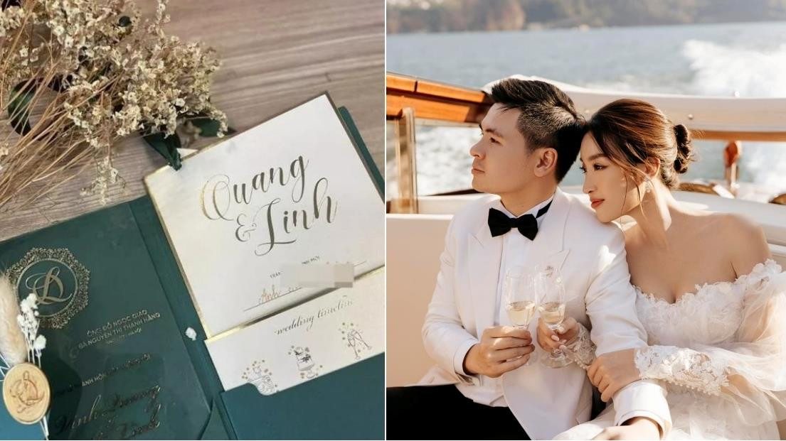 Dù đã lên tiếng xác nhận tiệc cưới sẽ tổ chức vào ngày 23/20 nhưng thiệp cưới chính thức của Đỗ Mỹ Linh và bạn trai vẫn là “bí mật” đối với cư dân mạng. Đám cưới này chỉ mời các khách mời cực thân thiết với hai bên gia đình cũng như cô dâu – chú rể. Mới đây nhất, tấm thiệp mời gây tò mò này đã chính thức được tiết lộ và chia sẻ lên mạng xã hội.