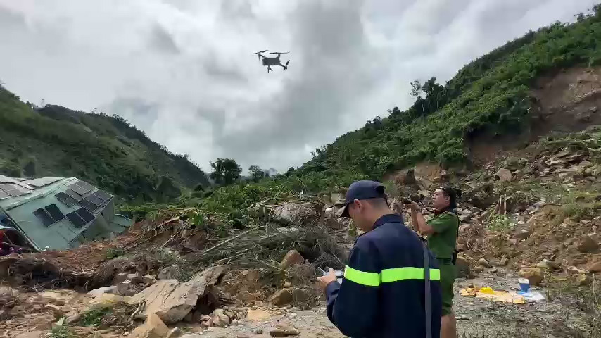 Ngày 15/10, lực lượng Cảnh sát PCCC&CNCH Công an tỉnh Quảng Ngãi sử dụng thiết bị bay không người lái để tham gia tìm kiếm anh Nguyễn Nhật Nam (27 tuổi) - nạn nhân mất tích sau vụ sạt lở ở nhà máy thủy điện Kà Tinh 1, xã Trà Lâm, huyện Trà Bồng.