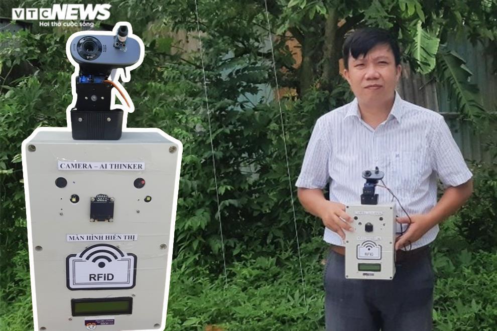 Thiết bị đo thân nhiệt thông minh cải tiến và hỗ trợ điểm danh từ xa của thầy Lê Đức Quốc. (Ảnh: NVCC)