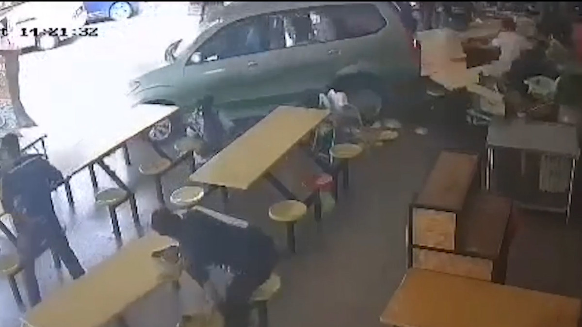 Thiếu niên được mẹ hướng dẫn lái ô tô vô tình đạp chân ga, xe lùi thẳng vào quán ăn tại Melaka, Malaysia khiến 11 thực khách bị thương.