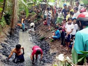 | Sau khi Xuyến và Duyên bị bắt, cơ quan điều tra tổ chức tát ao gần hiện trường ở xã Đại Ân 2 để mò hung khí gây án. |