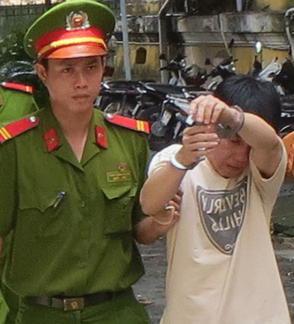 Công an đang dẫn giải bị cáo ra xe chở phạm