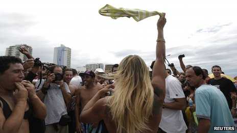 Dù chỉ hơn 10 phụ nữ tham gia biểu tình bằng cách cởi áo nhưng sự kiện này đã thu hút được hàng trăm phóng viên cũng như những người đàn ông đang có mặt tại bãi biển Ipanema, Rio de Janeiro.