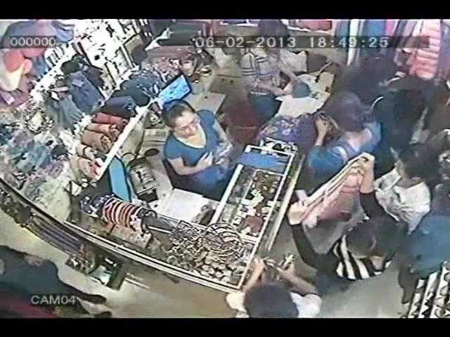 Vị khách hàng mải mua sắm mà không biết mình đang là mục tiêu của hai tên trộm