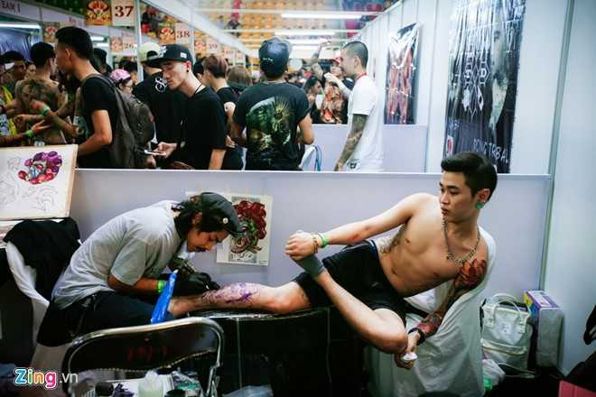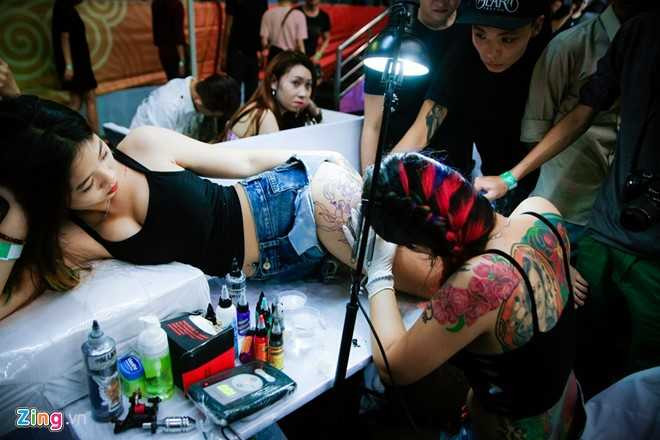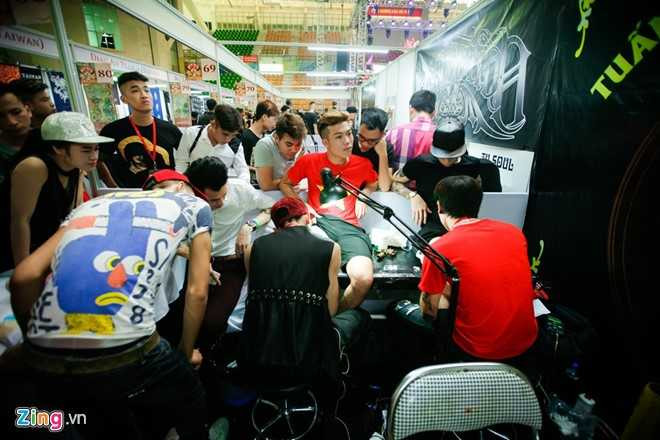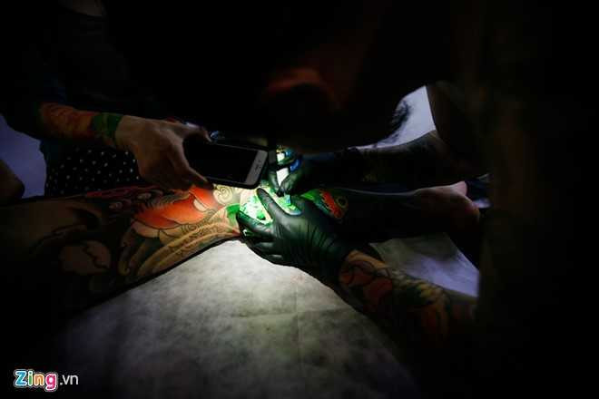 ![]() Cảnh thao tác tỉ mỉ của các thợ xăm. Nhân dịp này nhiều người mong muốn được thể hiện các tác phẩm ấn tượng, trau truốt nhất. |