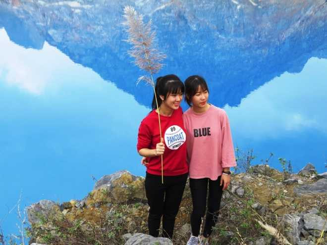 Nhiều bạn trẻ chọn hồ nước xanh làm "nền" cho những bức hình ưng ý.