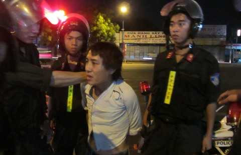 Đức bị các chiến sĩ CSCĐ bắt sau khi giật chiếc bóp của chị Kiều (Ảnh: N.D)