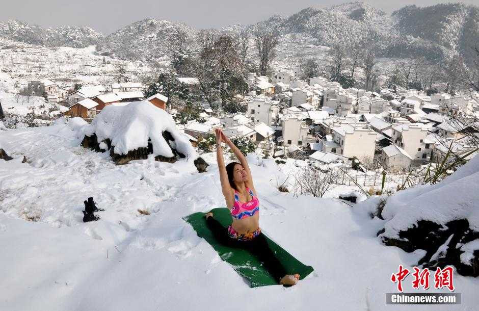 | Các cô gái tập yoga trong tuyết |
