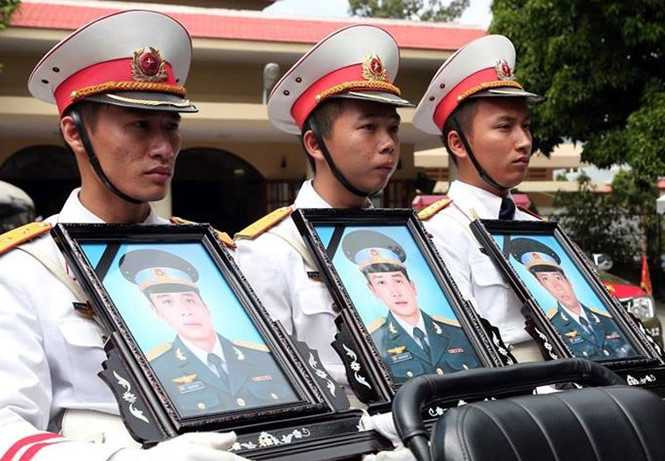 Di ảnh 3 phi công trong lễ truy điệu (Di ảnh thiếu tá Dương Lê Minh ngoài cùng bên phải)