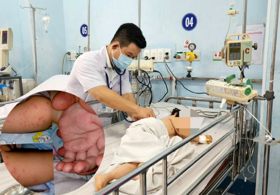 Thông tin từ người nhà bệnh nhân cho biết, trước đó, bé chỉ sốt nhẹ, sau đó sốt cao 39 độ C. Người nhà đã lau mát và uống thuốc hạ sốt không hạ. Hôm sau bé nổi hồng ban ở lòng bàn chân và miệng, nghi con mắc TCM chị đưa đến khám ở BV tư.
