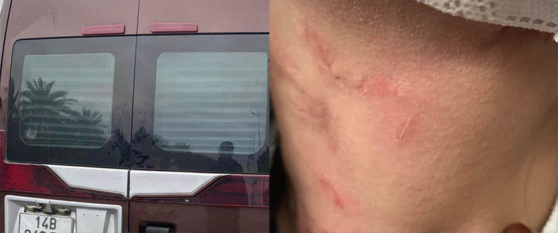 Trước đó, mạng xã hội Facebook chia sẻ thông tin kèm hình ảnh một hành khách bị xe khách “chặt chém”, đuổi xuống giữa cao tốc và bị hành hung với thương tích ở vùng cổ. Xe khách được nhắc đến có biển kiểm soát tại tỉnh Quảng Ninh.