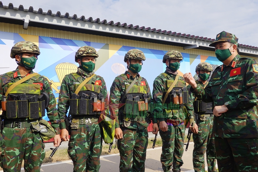Trước giờ thi đấu, Trung tướng Phùng Sĩ Tấn cùng đoàn công tác đã gặp gỡ đội tuyển; nghe báo cáo về công tác huấn luyện và tham gia thi đấu của Đội tuyển, thông báo cho các thành viên trong Đội tuyển về những thành tích rất đáng khích lệ của các đội tuyển của Đoàn QĐND Việt Nam tham gia thi đấu tại Army Games 2021. Đồng chí Phó tổng tham mưu trưởng động viên các thành viên tham gia thi đấu tự tin với hết khả năng của mình; đồng thời bảo đảm tốt công tác phòng, chống dịch COVID-19.