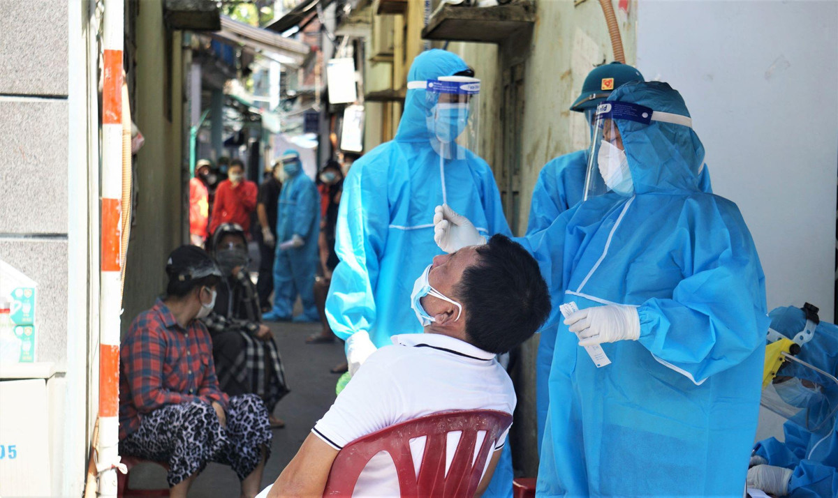 Nhân viên y tế lấy mẫu xét nghiệm COVID-19 cho người dân Đà Nẵng trong những ngày thành phố căng mình chống dịch.