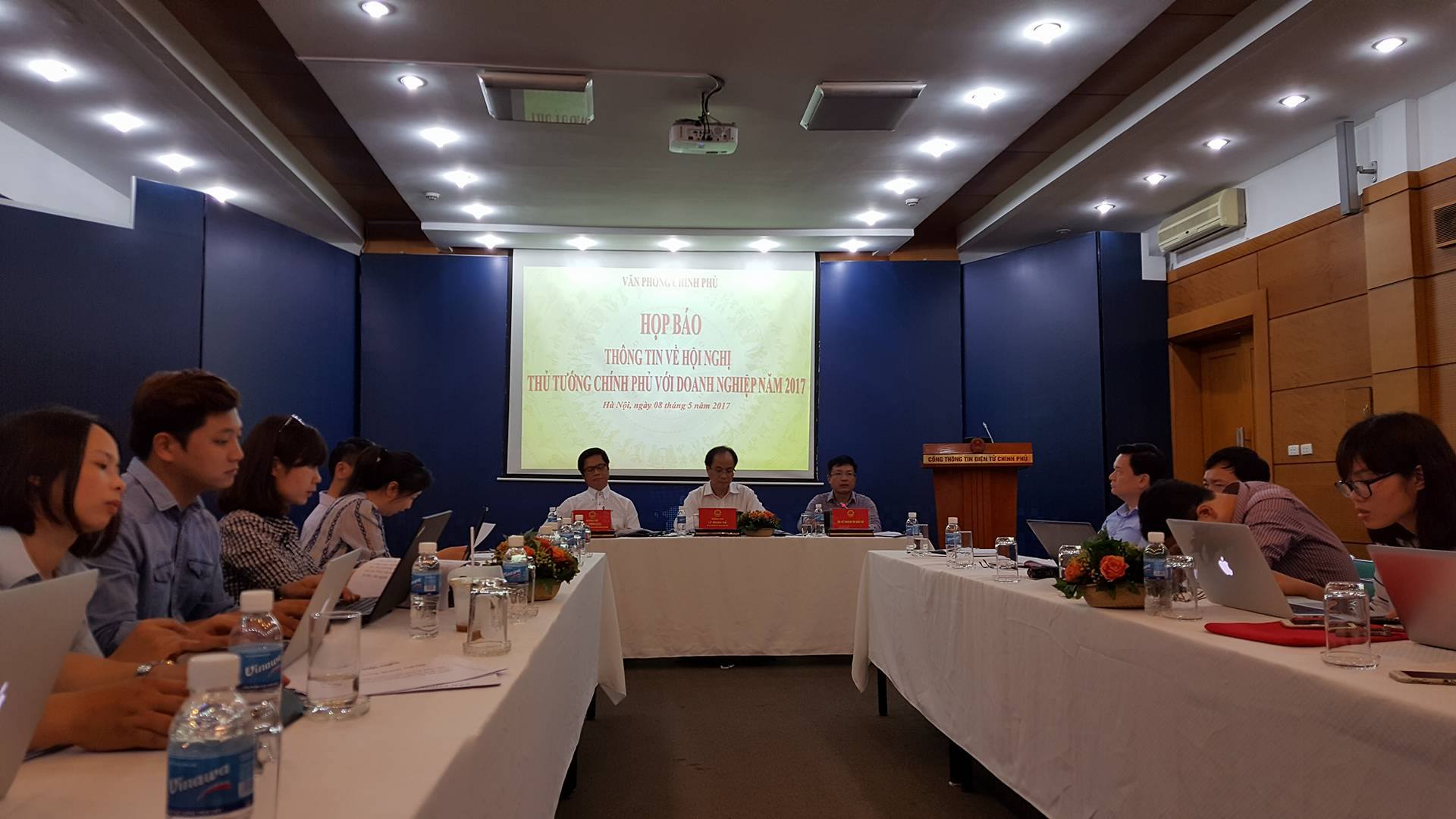 Chiều ngày 8/5, tại Hà Nội đã diễn ra buổi họp báo về Hội nghị Thủ tướng với doanh nghiệp năm 2017. Tham gia hội nghị, có sự góp mặt của Phó Chủ nhiệm Văn phòng Chính phủ Lê Mạnh Hà, Chủ tịch VCCI Vũ Tiến Lộc, Cục trưởng Cục Phát triển doanh nghiệp Bộ Kế hoạch và Đầu tư Hồ Sĩ Hùng.