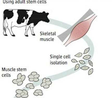 Các nhà khoa học sẽ chiết xuất tế bào gốc từ những mô cơ của bò và nuôi lớn chúng trong các hộp chứa trong phòng thí nghiệm. Các tế bào này sẽ được phát triển trong một môi trường nuôi cấy có chứa huyết thanh bào thai- mà trong đó có rất nhiều dưỡng chất cần thiết cho sự phát triển của tế bào.