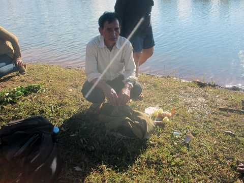 Theo ông Quách Trọng Hoan, trong quá trình lặn vớt cá, người anh Pyai đã vướng chặt vào đám bầy nhầy dưới hồ nên không thoát ra được.