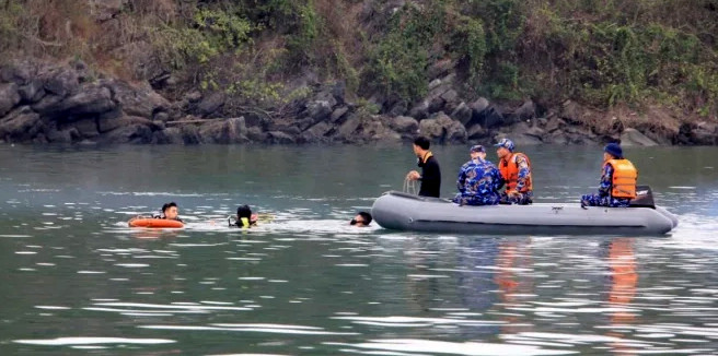 Lúc 19h18, lực lượng tại hiện trường vớt được 2 thi thể cùng một số mảnh vỡ nghi là của máy bay tại vị trí mép bờ, tọa độ 20 độ 51 phút 51,2 giây độ vĩ bắc - 107 độ 01 phút 13,4 độ kinh đông. Đến 1h30 ngày 6/4, theo báo cáo nhanh của cơ quan chức năng tại hiện trường, lực lượng tìm kiếm cứu nạn đã tìm được thi thể thứ 3, bước đầu xác định là phi công điều khiển máy bay. (Ảnh: Minh Khang).