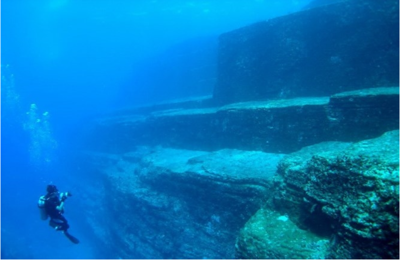 Một thợ lặn vô tình tìm thấy các khối đá tàn tích của kim tự tháp dưới đáy biển Nhật Bản. (Ảnh: National Geographic)