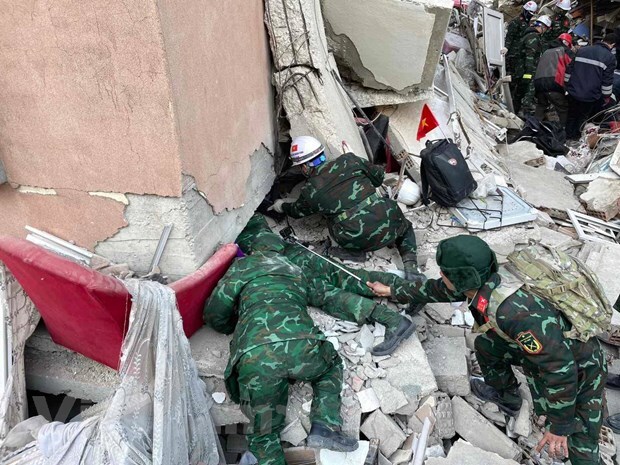Trước đó, trong các ngày 9/2 và 12/2, các đoàn công tác gồm hơn 100 cán bộ, chiến sỹ bộ đội và công an Việt Nam đã được cử sang Thổ Nhĩ Kỳ cùng với nhiều vật tư, thiết bị để tham gia công tác cứu hộ, cứu nạn tại các khu vực bị ảnh hưởng bởi động đất.