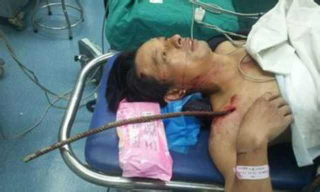 | Thoát chết may mắn dù bị thanh thép đâm xuyên người |