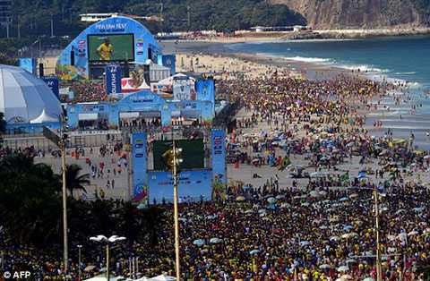 | Rất đông du khách đã tập trung theo dõi trận đấu giữa Brazil và Chile tại bãi biển Copacabana ở Rio |