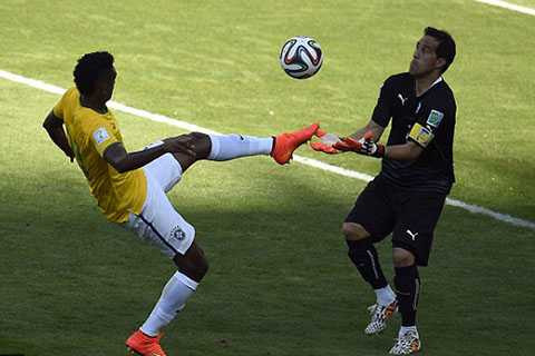 16' Cơ hội! Neymar đã có khoảng trống cực lớn sau khi tận dụng triệt để sai lầm của hàng thủ Chile. Tuy nhiên thay vì dứt điểm ngay, "tiểu Pele" lại giữ bóng lại và cơ hội đã mất đi, sau khi đồng đội không lên hỗ trợ kịp.