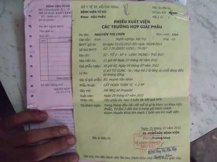 | Hàng loạt các giấy tờ chữa bệnh của chị Chín (Ảnh: N.D) |
