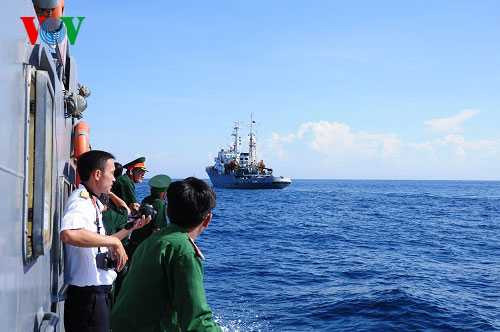| Tàu Bộ đội Biên phòng Quảng Ngãi đón những ngư dân bị nạn trở về |