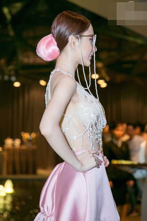 | Chiếc áo chỉ kết bằng ngọc trai không đủ che hết vùng nhạy cảm của Angela Phương Trinh. Tuy vậy cũng công nhận rằng giờ đây, Angela đã bớt "nổi loạn" hơn thời gian trước rất nhiều. |