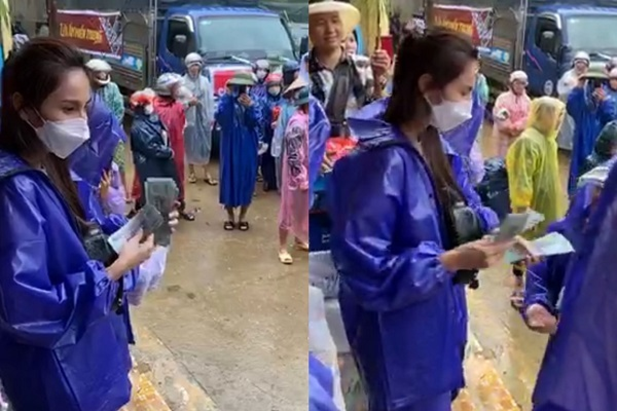 Ca sĩ Thủy Tiên ủng hộ người dân lũ lụt ở Quảng Bình.