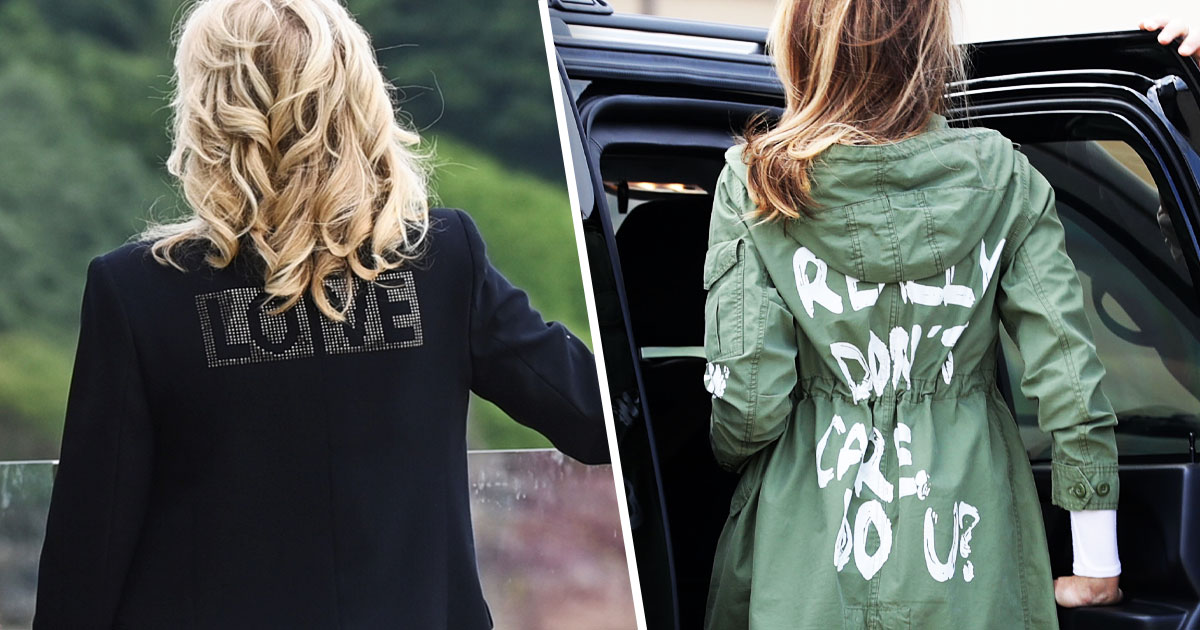 Một trong những chi tiết đáng chú ý trong cuộc gặp giữa Thủ tướng Anh Boris Johnson và Tổng thống Mỹ Joe Biden hôm 10/6 là chiếc áo khoác đen có in dòng chữ "Love" (Tình yêu) của đệ nhất phu nhân Mỹ.