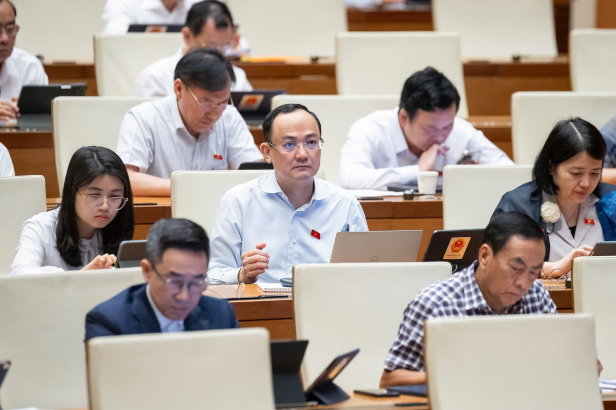 Các đại biểu thảo luận tại hội trường.