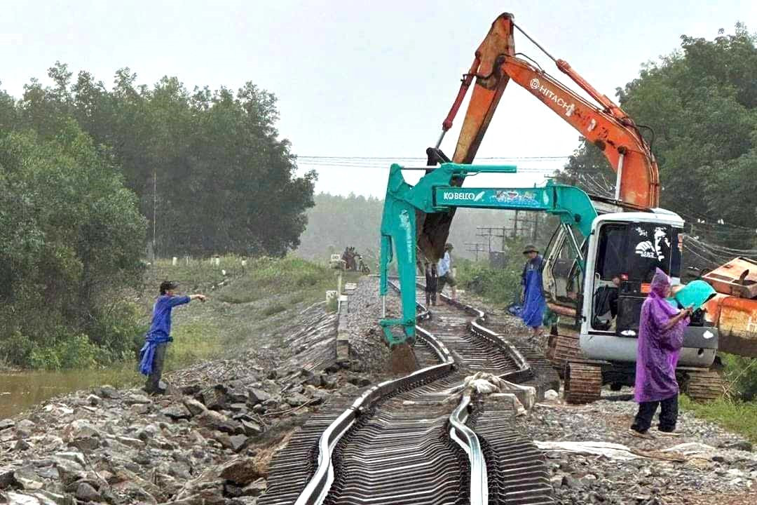 Đường sắt Bắc - Nam bị hư hỏng do bão số 6 (Trami) gây ra