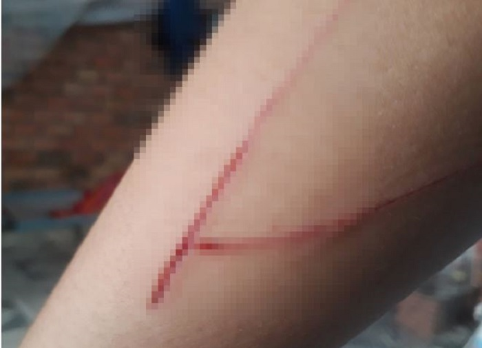B. cho hay, 11h ngày 23/4, trên đường từ nhà ra công ty làm việc, B. bị 2 thanh niên đi trên xe gắn máy dùng vật nhọn rạch 2 vết thương trên bắp tay trái, sau đó bỏ chạy.